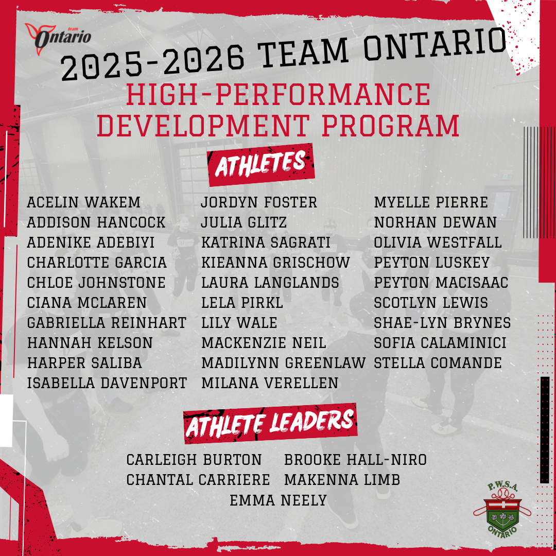 The Provincial Women’s Softball Association (PWSA) is pleased to announce the 34 athletes selected to be part of the 2025–2026 Team Ontario High-Performance Development Program (HPDP) for the Winter Training Season.